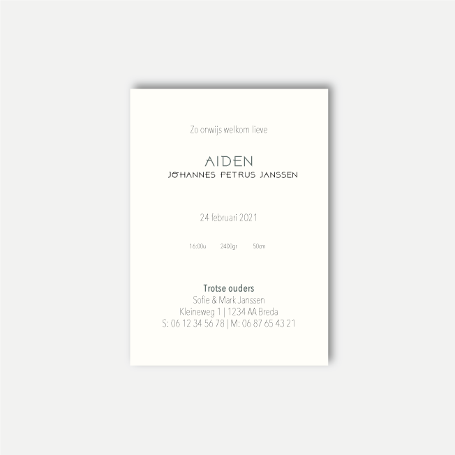 Een modern geboortekaartje met groene tinten voor jouw pasgeboren zoontje.